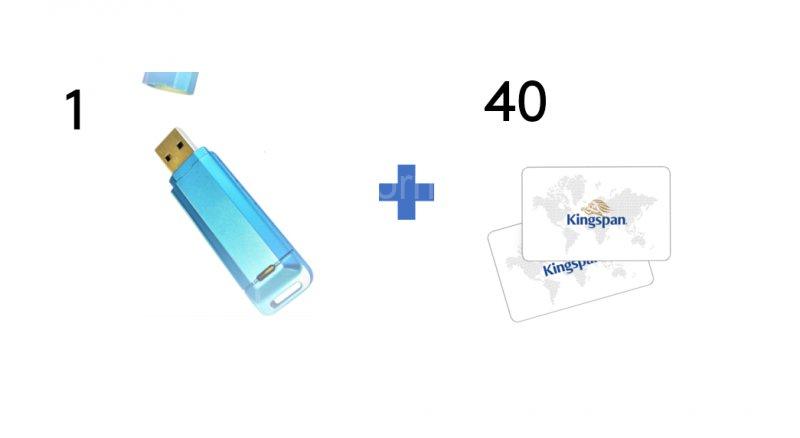 - składowe pakietu: czytnik USB + 40 kart RFiD